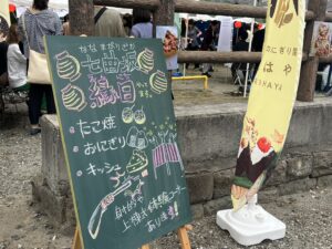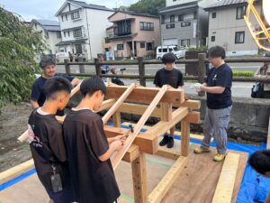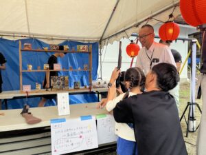 みのり建築舎からは、小松と大工の菊地がコーナーを担当。呼び込みは地元の中学生が。高校生や大学生もボランティアで参加してくれました。