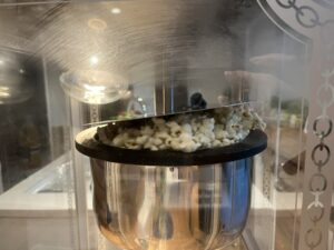 今回のイベントに備えて、みのりTシャツを作成。今後も活用していく予定です。ポップコーンができていく様子。いい匂いもするので、全自動なのに目が離せなくなりました。