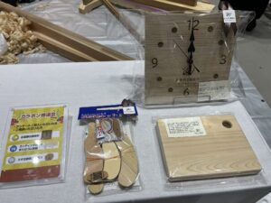 抽選会では、広葉樹の時計や、ヒノキのカッティングボード、南三陸杉で作ったポンポンなど、みのり建築舎らしい景品をご用意しました。