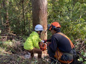 ご自宅で使う大黒柱・伐採体験を行いました!(^-^)
