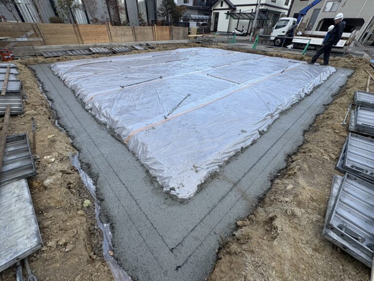 防湿シート張り、捨てコン完了!