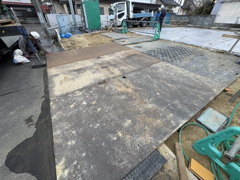 敷地乗り入れ部に敷き鉄板!