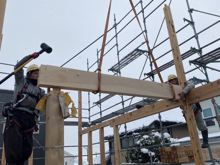 建主様自ら大黒柱や梁となる木を伐採しました!
