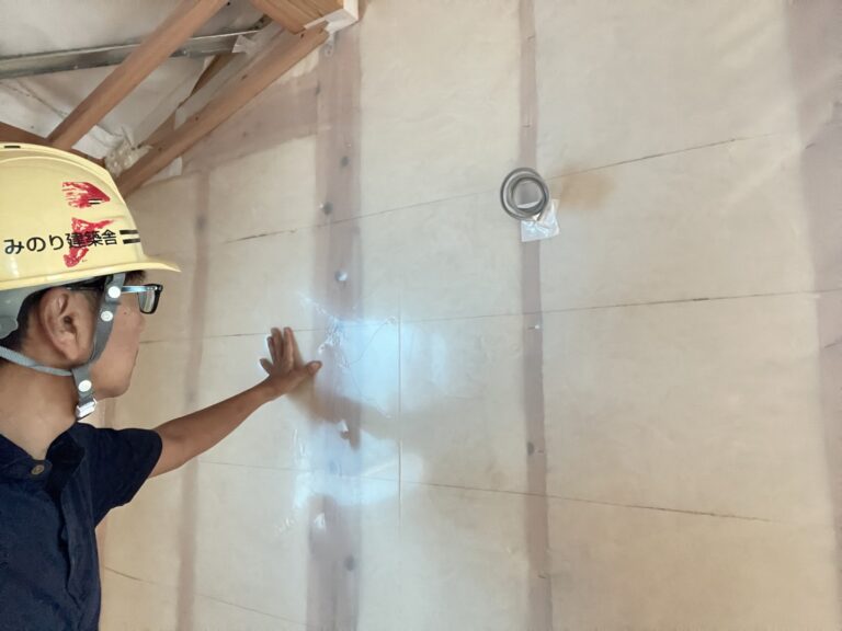 結果はC値0.5㎠/㎡!今回も高気密の施工ができました!