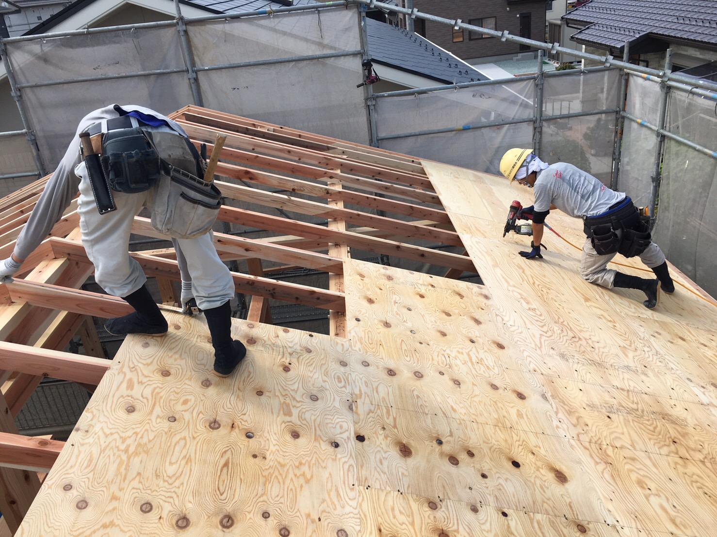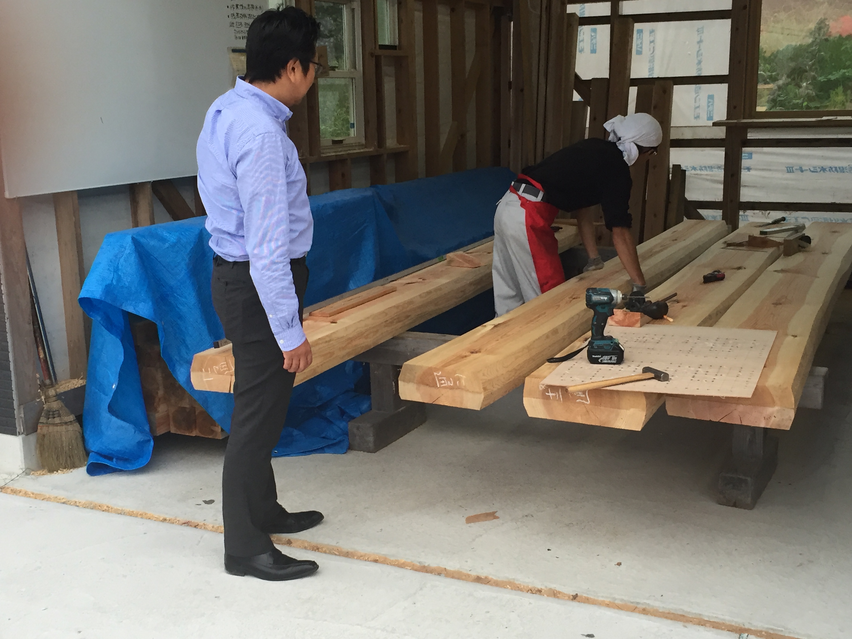 2階建ての場合は、2階の材料を赤墨で墨を付けます。