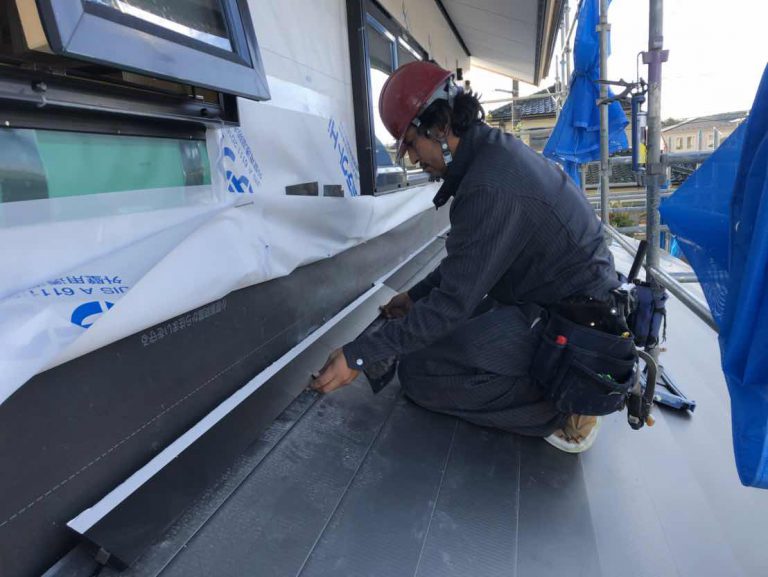 破風の板金施工中!