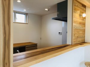 ダイニング、ケヤキ壁板!