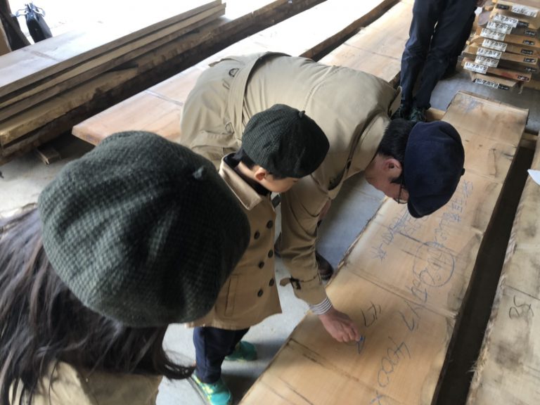 岩手県森林組合の阿部さんに、広葉樹の原木の説明をしてもらいます!