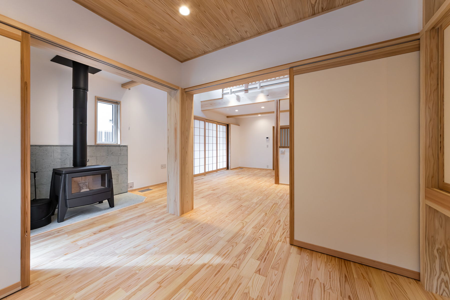 ゆっくりとしたおうち時間を楽しむアイテム「薪ストーブ」も設置。